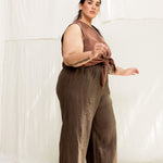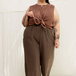 Wearing Cacao—Julia is 5'8" with a 46.5" chest, 36.5" waist, and 52" hip. She is wearing size 2X.