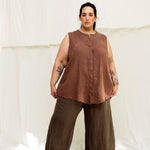 Wearing Indigo and Flax—Anna is 5'2" with a 35.5" chest, 28" waist, and 37" hip. She is wearing size XS.