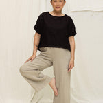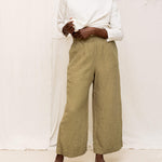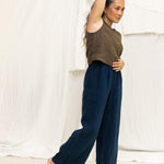 This signature ES style has evolved from our very first collection in 2013 with its high rise, wide leg, generous hem, and flat elastic waist. Now featuring optional inseam pockets, you can choose your own adventure for the ability to carry-on or keep the silhouette as sleek as possible. The base shape is classic 1920s—inspired by the elegant, put-together-but still-a-little-sexy-and-quirky beach pajamas of the time. Shows a bit of ankle and has wonderful drape and movement. The clean, no-fuss cut strikes the perfect balance of statement and simplicity and looks just as good with a silk tank and heels as with a cozy sweater and sneakers.