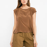 A short, shell version of our Josephine Tunic. This piece is an amalgamation of a few difference sources of inspiration. The Josephine was a piece I designed very early on - named after a favorite Wallflowers song, it was a simple cap sleeve tunic that worked with anything. For this version, I improved the fit of the sleeves and neck, and added volume at the back with a box pleat. The side slits were inspired by Colette, one of our very first seamstresses, and a dramatic, full-length, sheer tunic with slits she made for herself years ago. The side vents add the perfect amount of movement and drama to this piece, create a subtle a-line shape and hint of ease around the hips, and allow for excellent air flow.