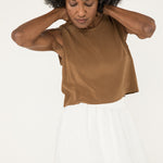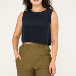 The Petra Crop is one of our earliest styles. A simple, classic crop top meant for summertime with an elegant boat neckline. Imagine weekend getaways to the coast or the mountains. Wear this paired with the matching Bel Skirt for sandy afternoon walks or over the classic Andy Trouser to dinner and drinks.