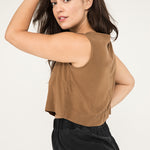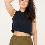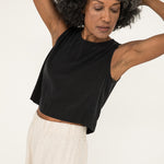 Carefully cut armholes hit right at the shoulder bone—revealing everything you want to show and nothing you don't. Its cropped length hits at the natural waist and pairs perfectly with high-rise pants and skirts, and layers well over slip dresses.