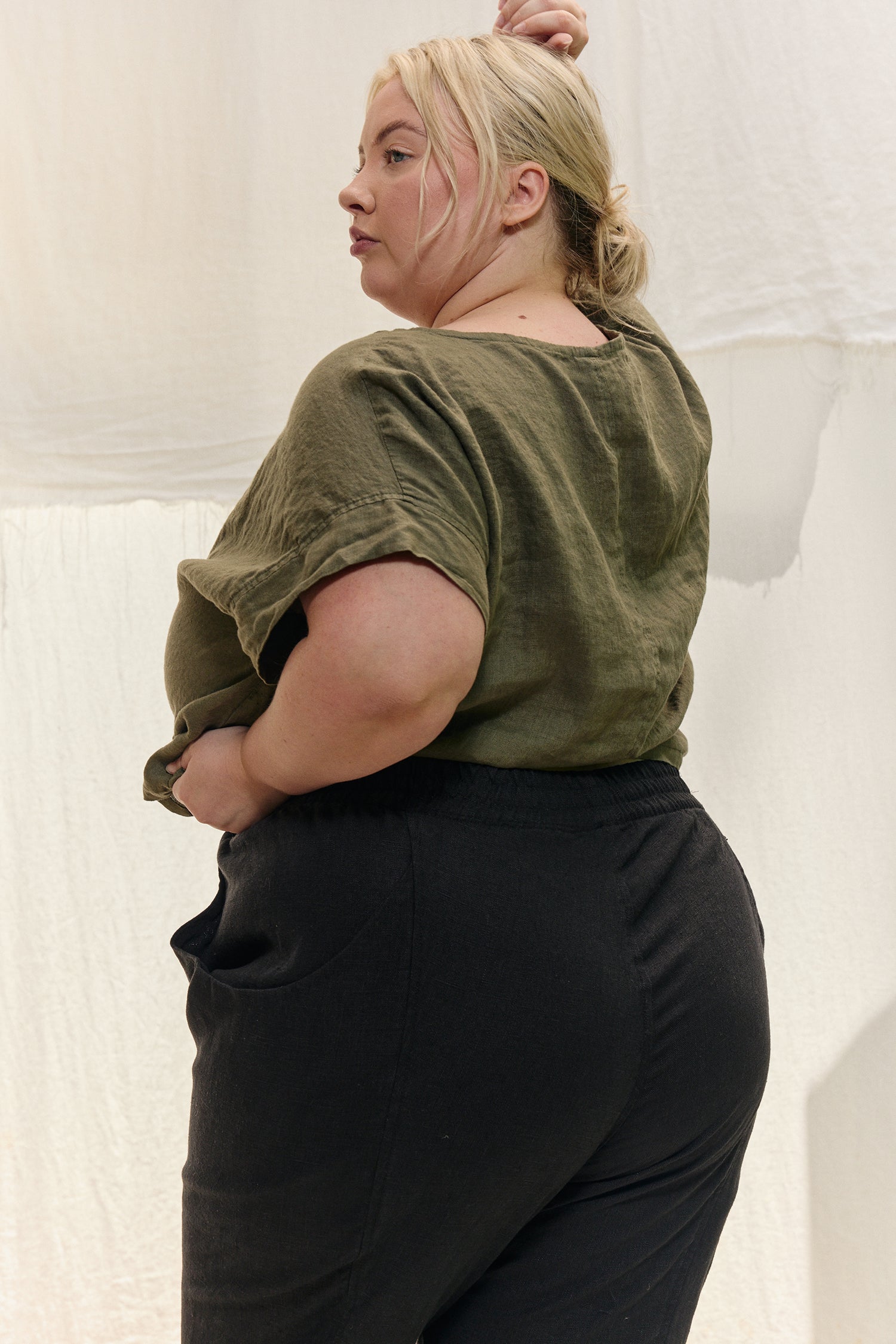 Georgia Tee in Lightweight Linen, Lichen, Size 1X/2X | READY TO SHIP