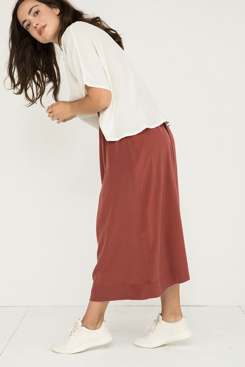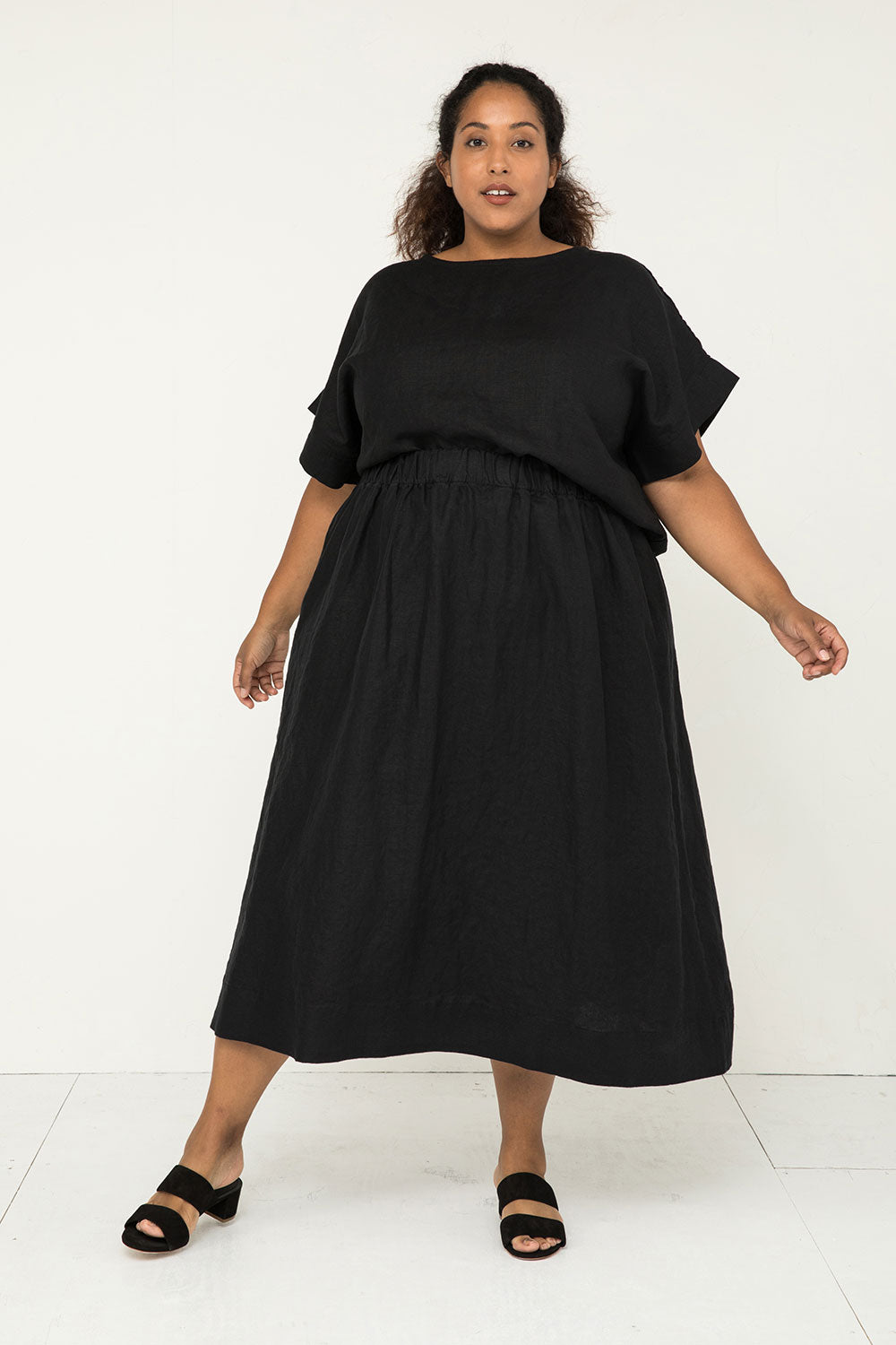 The skirt that’s so simple it is brilliant. I sometimes find skirts too fussy for my taste, so I created the most pared-down version of this garment–nothing less and nothing more than exactly what was needed. It has enough length to show some leg but also provides modest coverage, a generous hem to add luxe weight and body to the fabric, and just enough gathering to add fullness and movement at the hip but not become bulky at the waist.