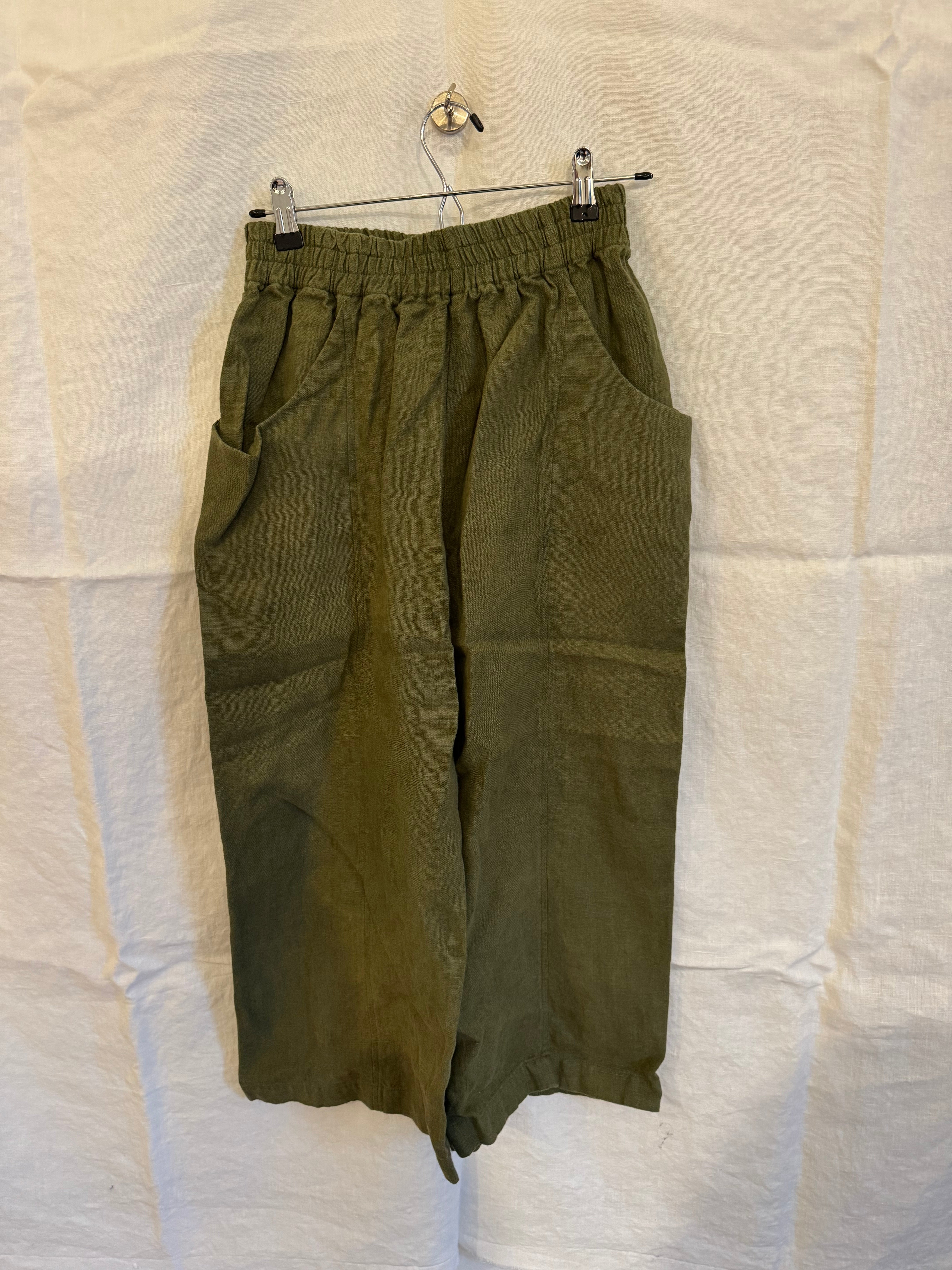 Clyde Culotte in Midweight Linen, Verte, Size S-Short | SAMPLE SALE