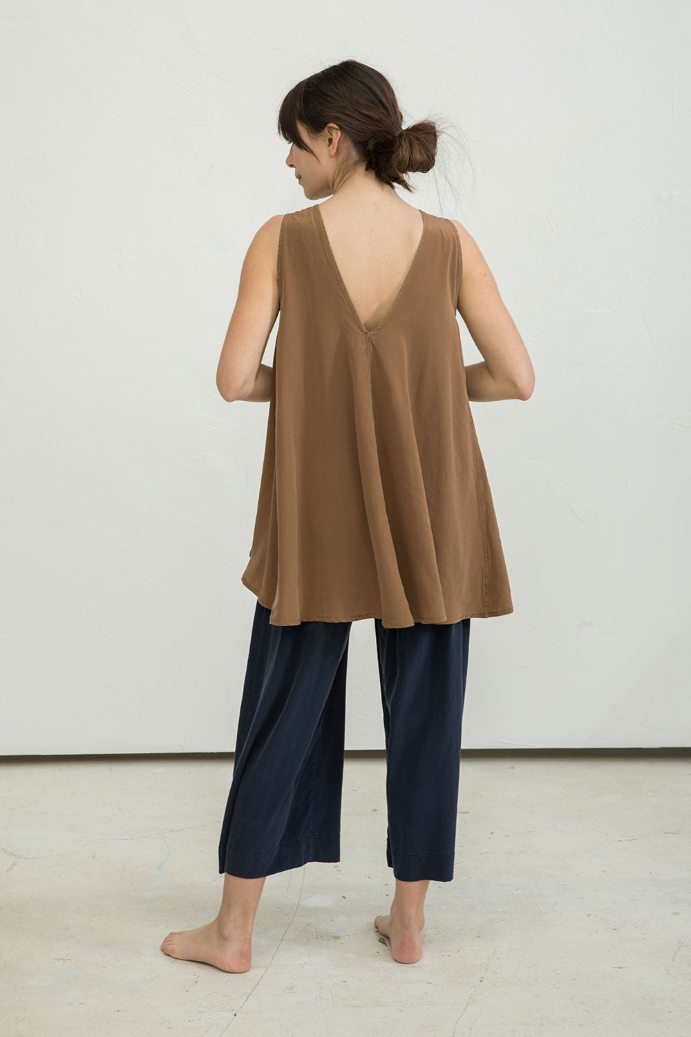 This is the tunic I dream about every year in the middle of summer when the heat is a tangible force in the air. The low, free armholes, deep-v back, and wide trapeze panels hang away from your body the way you want everything to when your skin is damp and the sun is high. This piece embodies movement and represents breeze. The slightest movement will billow the fabric in a captivating, delicious swish. The Harlow is meant for days spent puttering around the garden or for nights spent strolling the city.