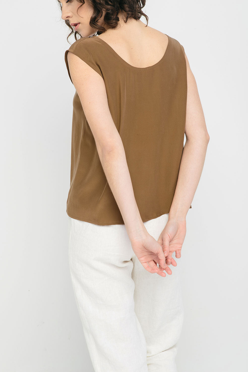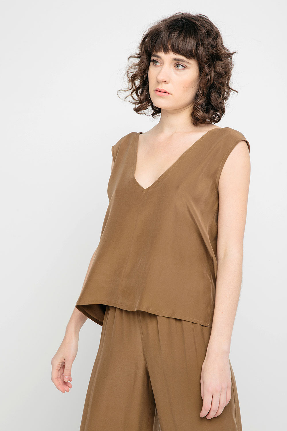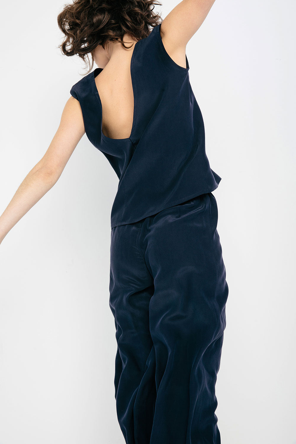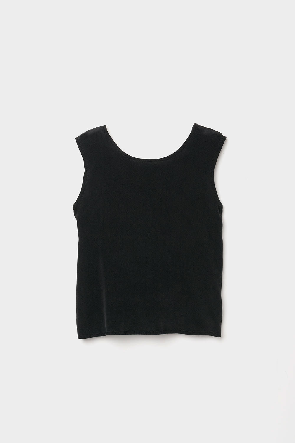 A simple sleeveless silk tank–the one you’ve been looking for. Minimal cut recalls those perfect silk shells from the 90s, but with a subtle a-line shape so it doesn't pull at the hips like those thrifted ones often do.