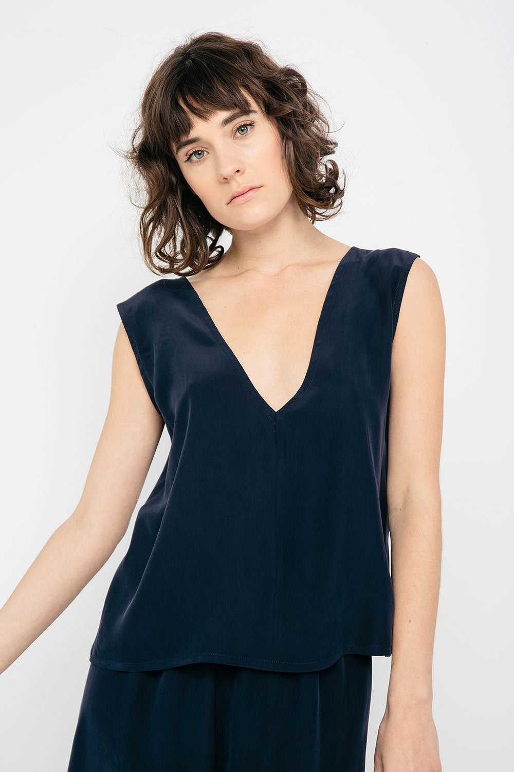 This piece can stand on it's own, paired with broken in jeans and birks for days on end. Or it can be one element of a layered outfit, under sweaters and jackets or over strappy dresses. It's the tank you’ll pull out of your closet each morning–the drapey, cool-to-the-touch silk makes getting dressed an experience to be savored.