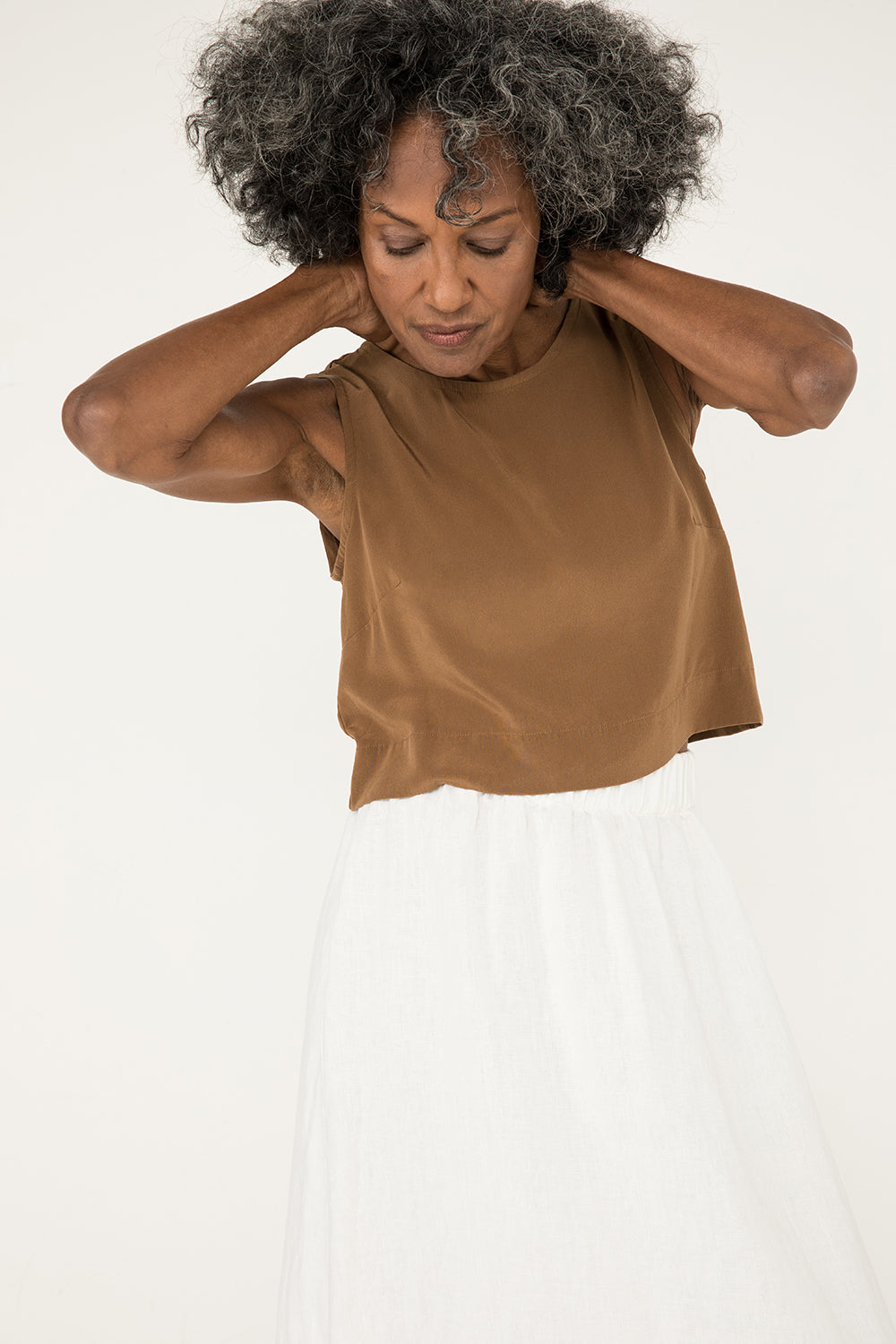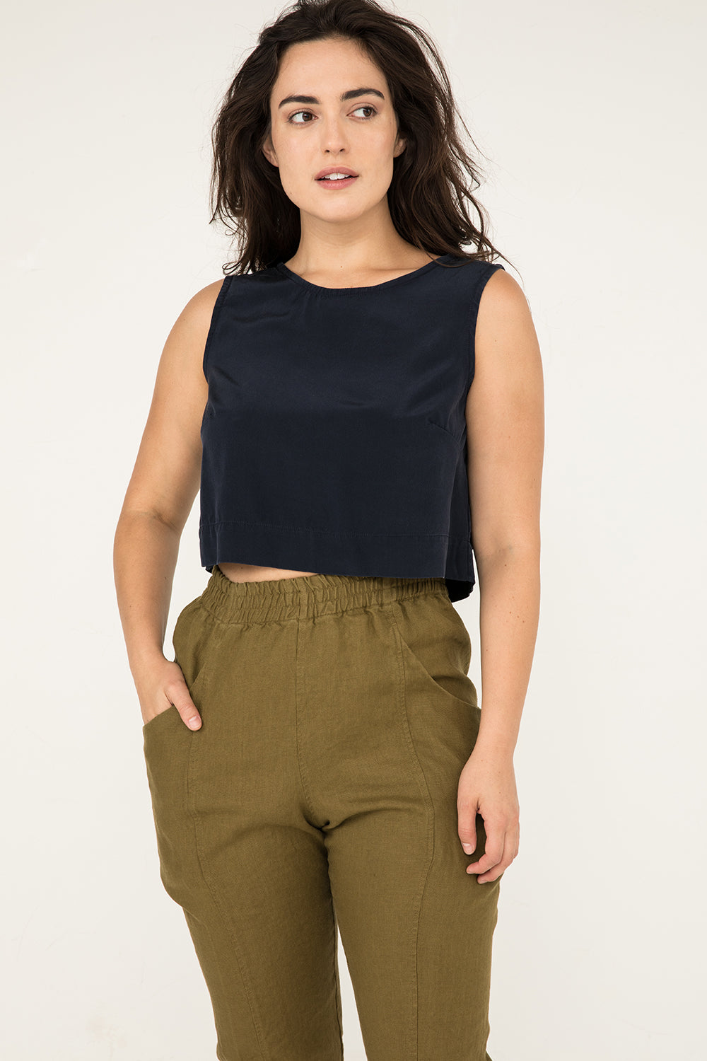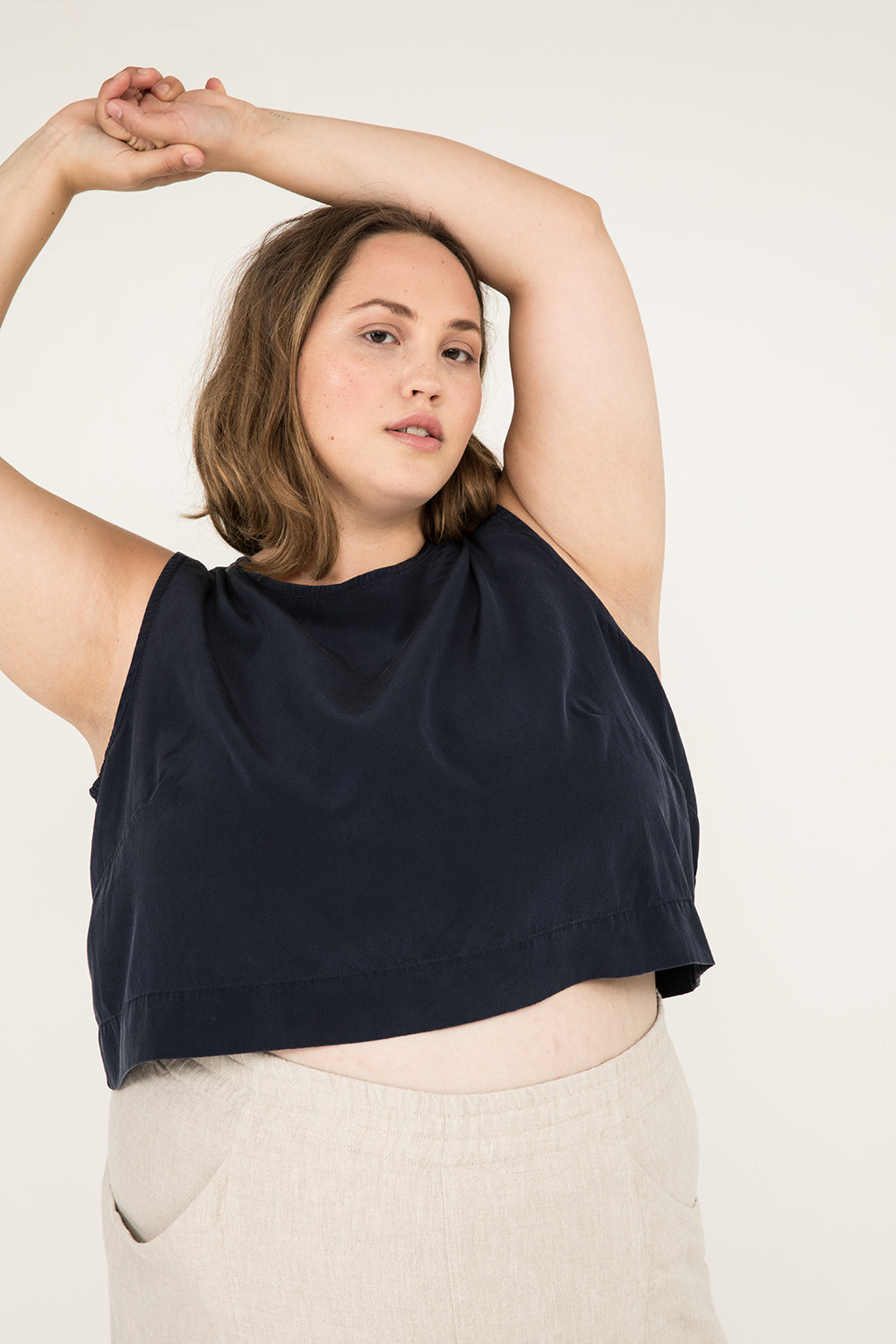 The Petra Crop is one of our earliest styles. A simple, classic crop top meant for summertime with an elegant boat neckline. Imagine weekend getaways to the coast or the mountains. Wear this paired with the matching Bel Skirt for sandy afternoon walks or over the classic Andy Trouser to dinner and drinks.