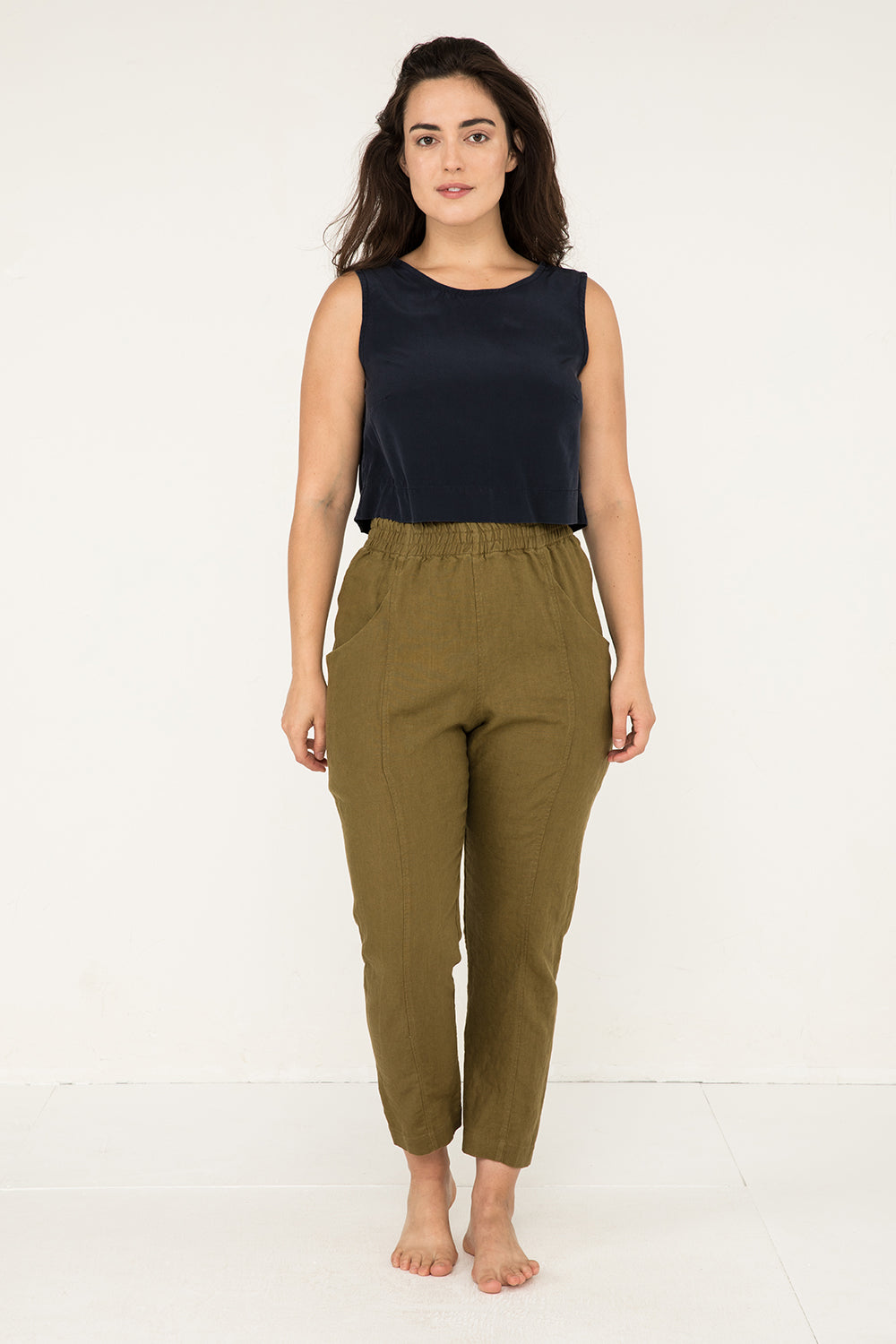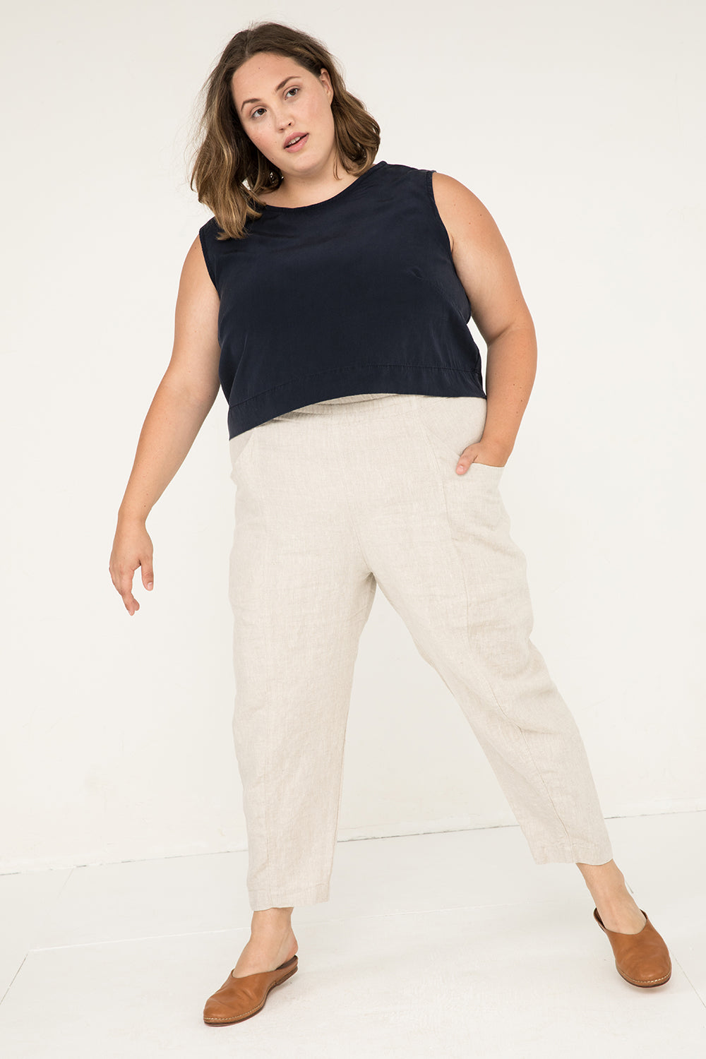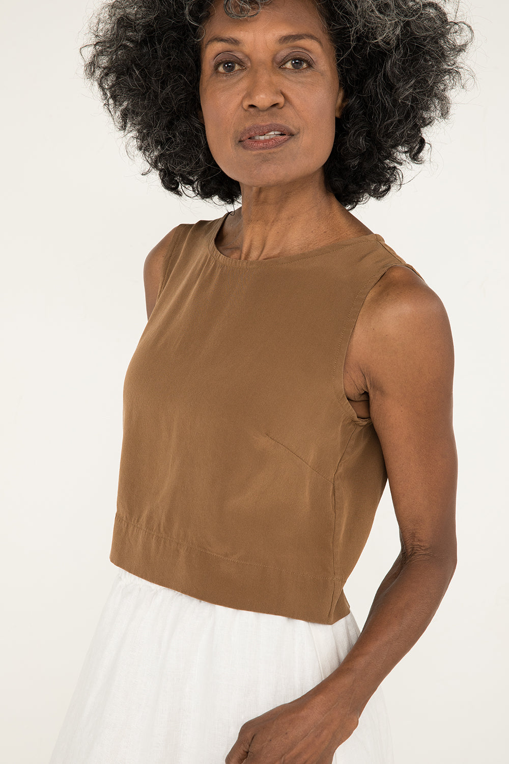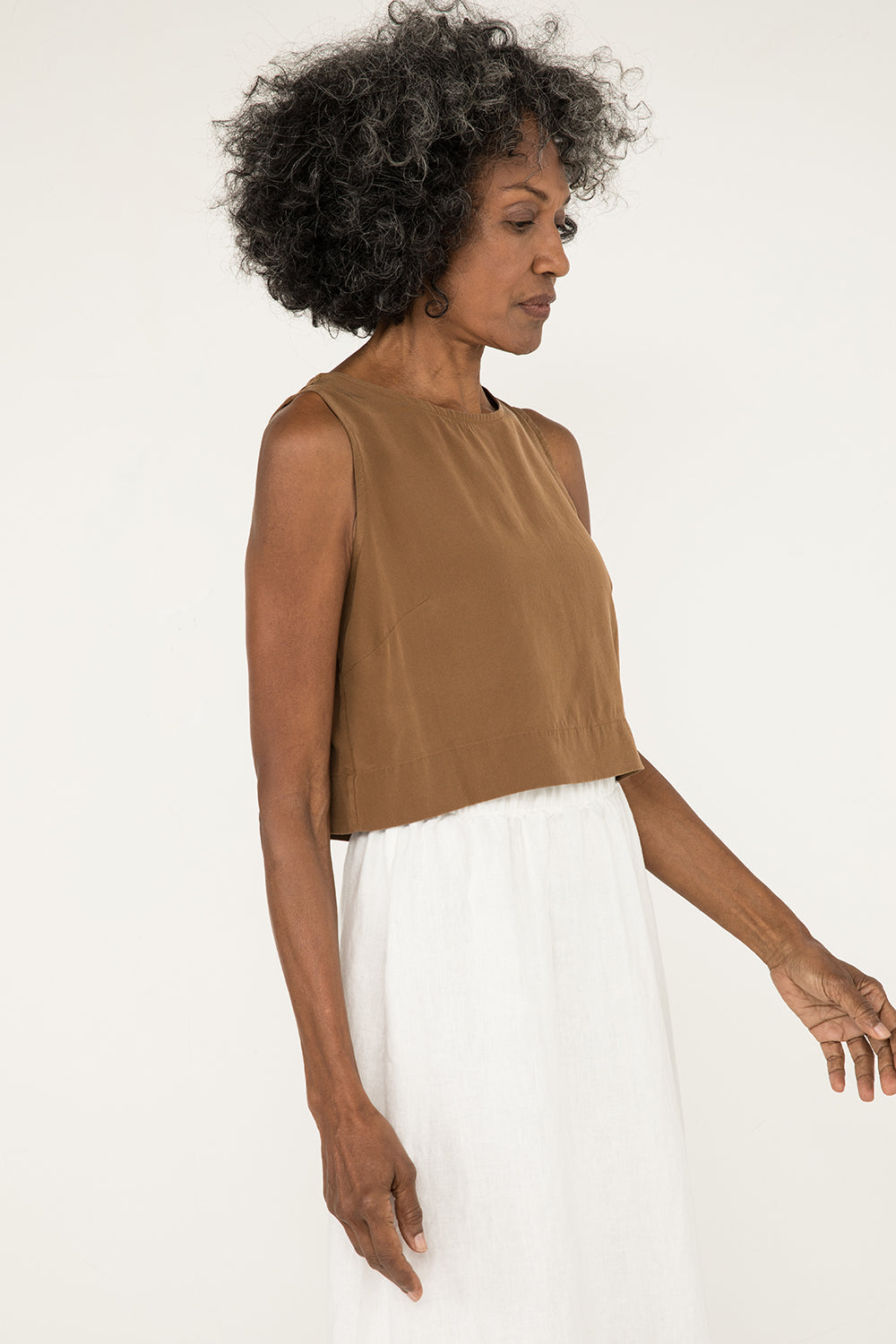 The Petra Crop is one of our earliest styles. A simple, classic crop top meant for summertime with an elegant boat neckline. Imagine weekend getaways to the coast or the mountains. Wear this paired with the matching Bel Skirt for sandy afternoon walks or over the classic Andy Trouser to dinner and drinks.