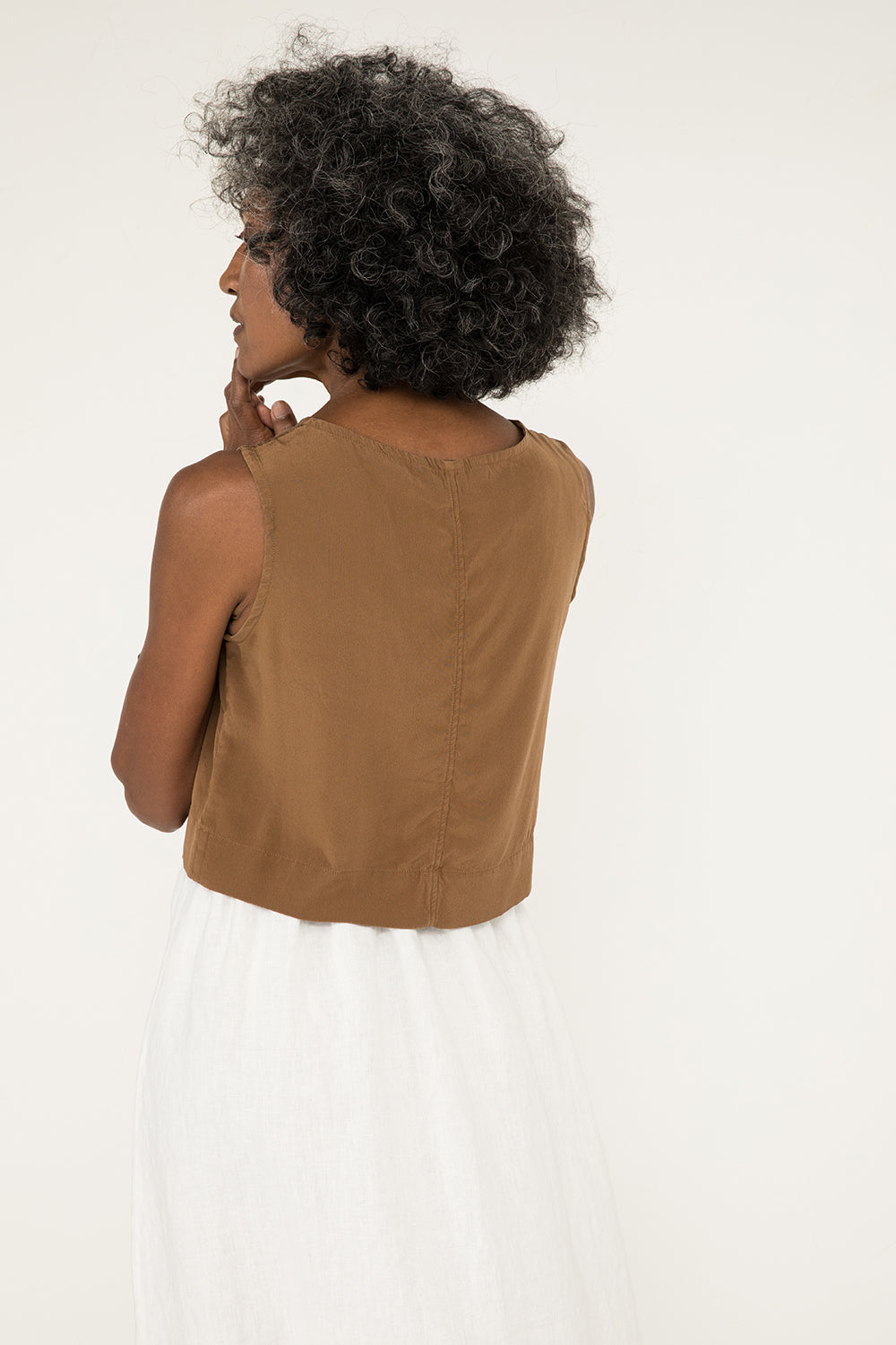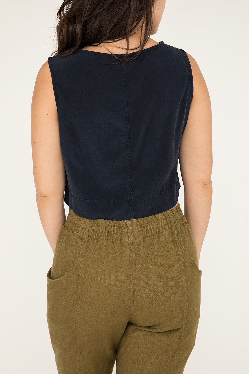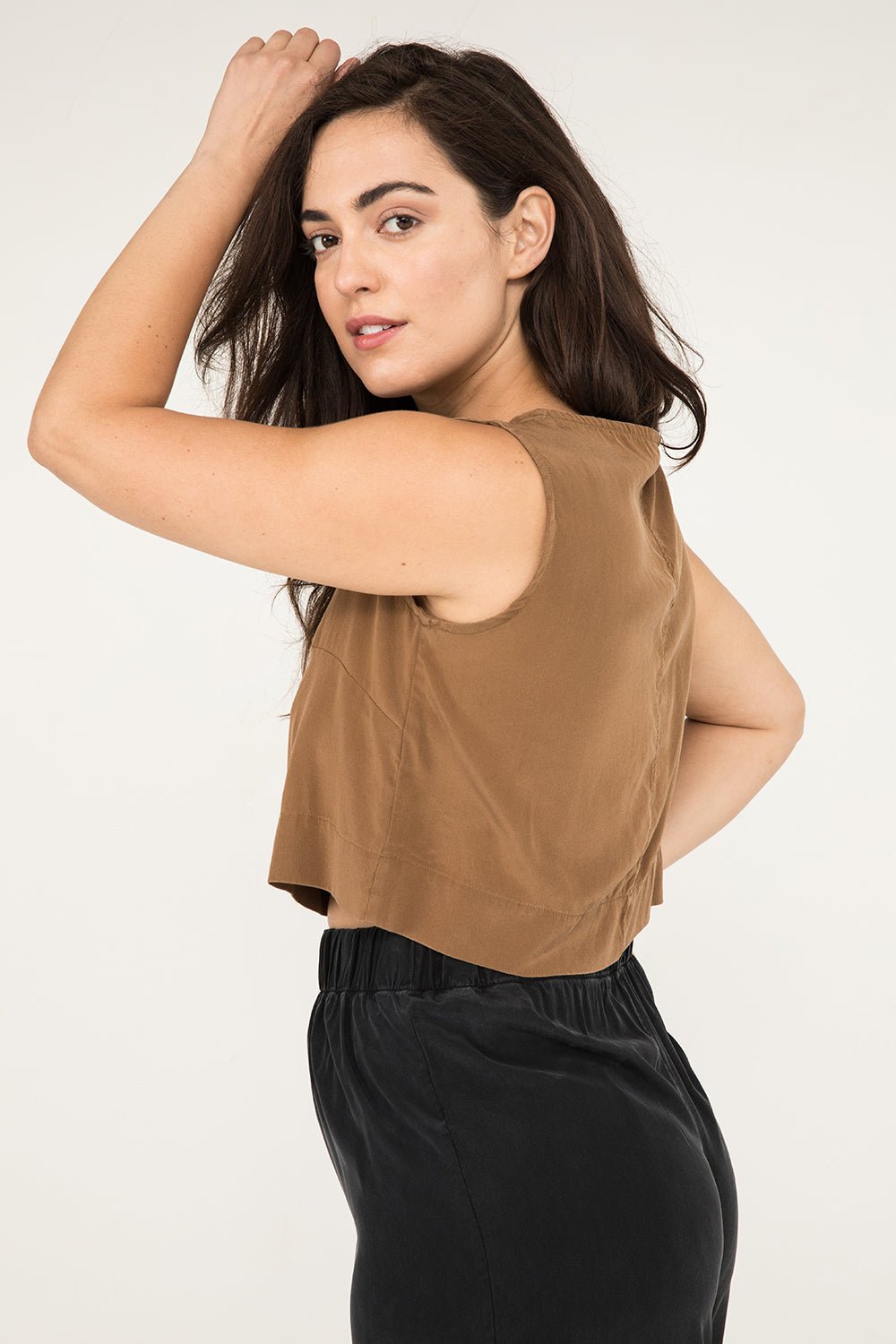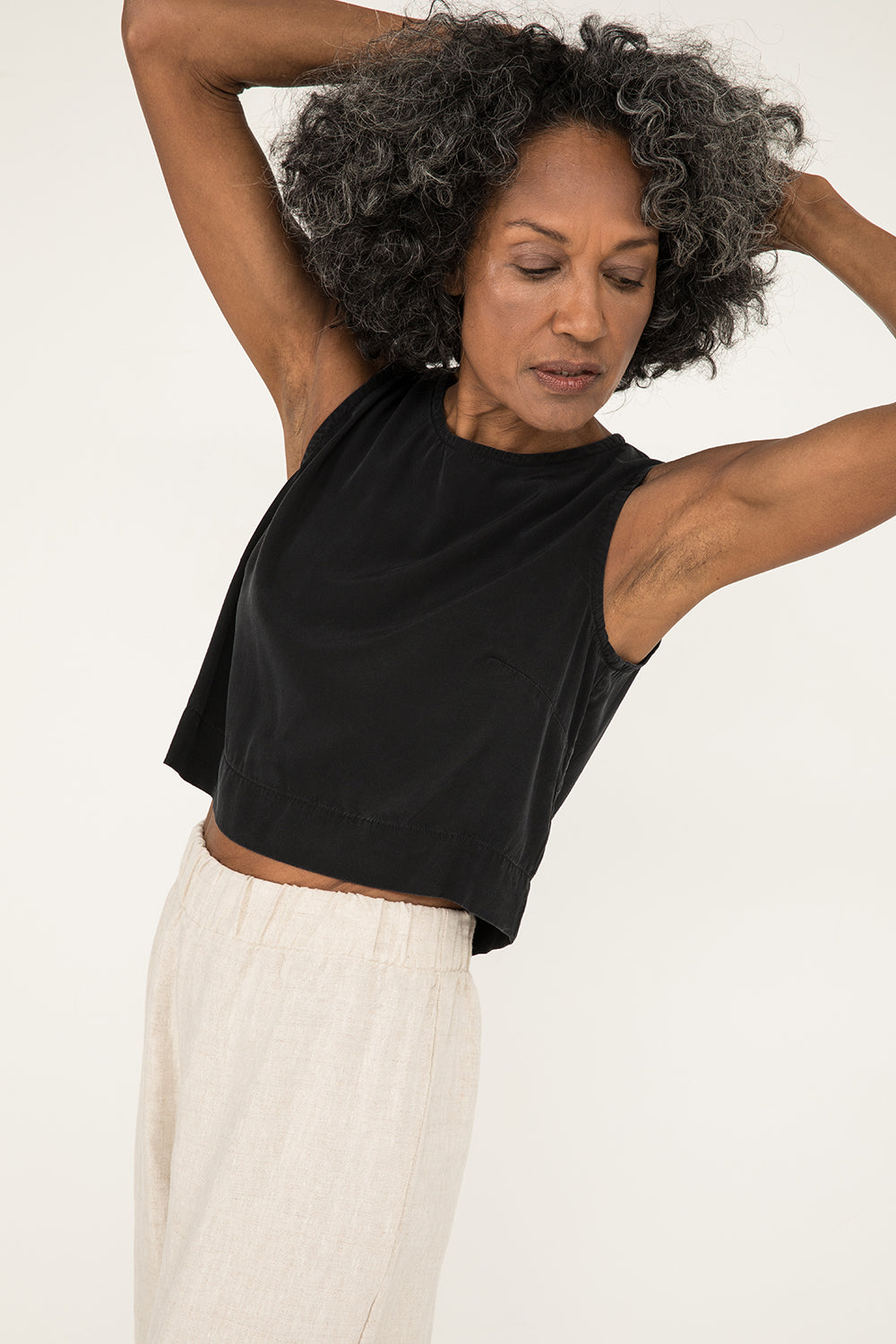 Carefully cut armholes hit right at the shoulder bone—revealing everything you want to show and nothing you don't. Its cropped length hits at the natural waist and pairs perfectly with high-rise pants and skirts, and layers well over slip dresses.