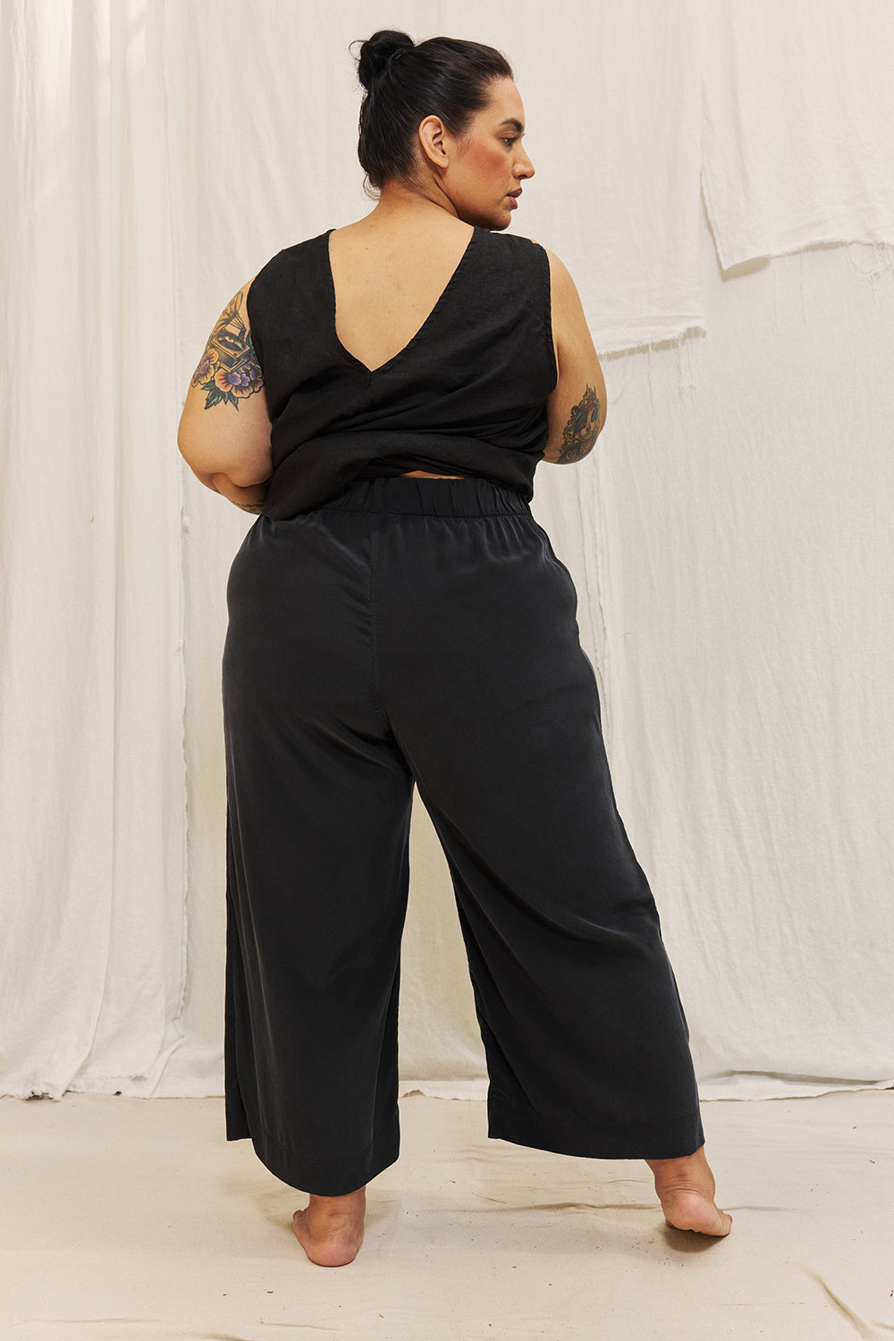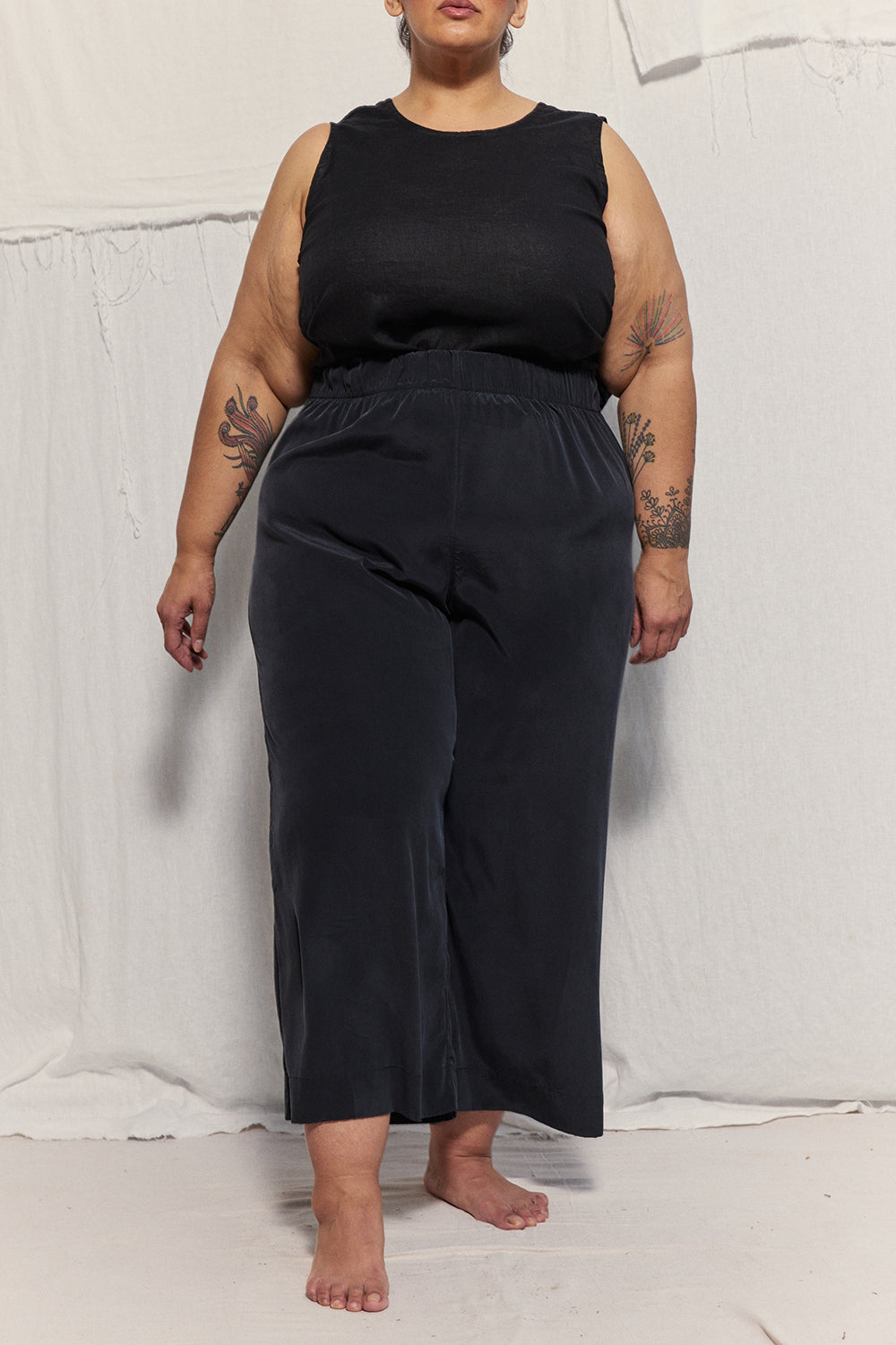 Florence Pant in Silk Crepe, Washed Black, Size XL-Short | READY TO SHIP
